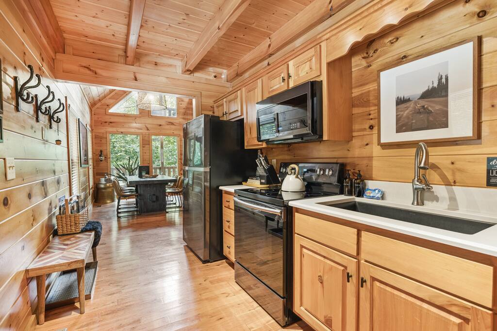 ☆☆ YOUR HOME AWAY FROM HOME ☆☆ If you're sick and tired of old run down cabins then The Nest At Ridgecrest will blow you away. There is no better feeling than hearing the sounds of nature, smelling the forest as it glistens under the moon, and gazing at the stars as you soak in the hot tub and deepen your state of relaxation. 📍Anakeesta: 9.6 miles 📍Dollywood: 9.6 miles 📍Downtown Gatlinburg: 9.5 miles 📍Great Smoky Arts & Crafts Community: 6.7 miles 📍Great Smoky Mountains National Park: 10 miles 📍Ober Gatlinburg: 10 miles 📍Rocky Top Sports World: 6.4 miles 📍The Island in Pigeon Forge: 7.7 miles ★★ MAIN LEVEL ★★ •Only 4 steps to enter the property with the top step only being 2-3 ft off the ground •Master bedroom with log king bed, 32" smart TV (Cable is provided with YouTube TV. Bring your own password for all other apps.), jacuzzi tub, and en suite full bathroom with tub/shower combo •Washer and dryer in master bedroom closet •Fully stocked kitchen (Keurig and regular coffee pot provided) •Dining table that seats 6 •Living area with 55" smart TV. Cable is provided with YouTube TV. Bring your own password for all other apps. •Outside deck with dining table for 4 and four rocking chairs •Outdoor gas fireplace (available year-round) •Indoor gas fireplace (Available October 1 - March 31) ★★ UPPER LEVEL / OPEN LOFT ★★ •Queen log bed •Full bathroom with tub/shower combo •43" Smart TV. Cable is provided with YouTube TV. Bring your own password for all other apps. •Pool table •Catwalk leading to upper deck with hot tub •Another upper deck off of sleeping area •Four yoga mats •Closet with 2 single cots that guests can set up for children/small adults; we've found that the cots are a lot more comfortable than a sofa bed or air mattress ★★ THE PROPERTY ★★ •Property is on 1 acre so there will not be other cabins right next to or in front of you (for example: a big cabin development), but there is one cabin across the street. There are also other cabins sprinkled along our road. •Paved roads all the way •Outdoor BBQ grill (we do not provide charcoal) ★★ CABIN AMENITIES ★★ •A startup supply of regular coffee, decaf coffee, and hot chocolate pods is provided •A startup supply of tea, sugar, and creamer is provided •Travel-sized shampoo, conditioner, body wash, and lotion is provided •Paper towels, toilet paper, trash bags and dishwasher pods are provided •All quality linens and towels are provided ★★ SOCIALS ★★ •Follow us @modernmountainnests for more photos, a video tour, and additional videos!